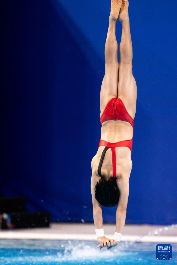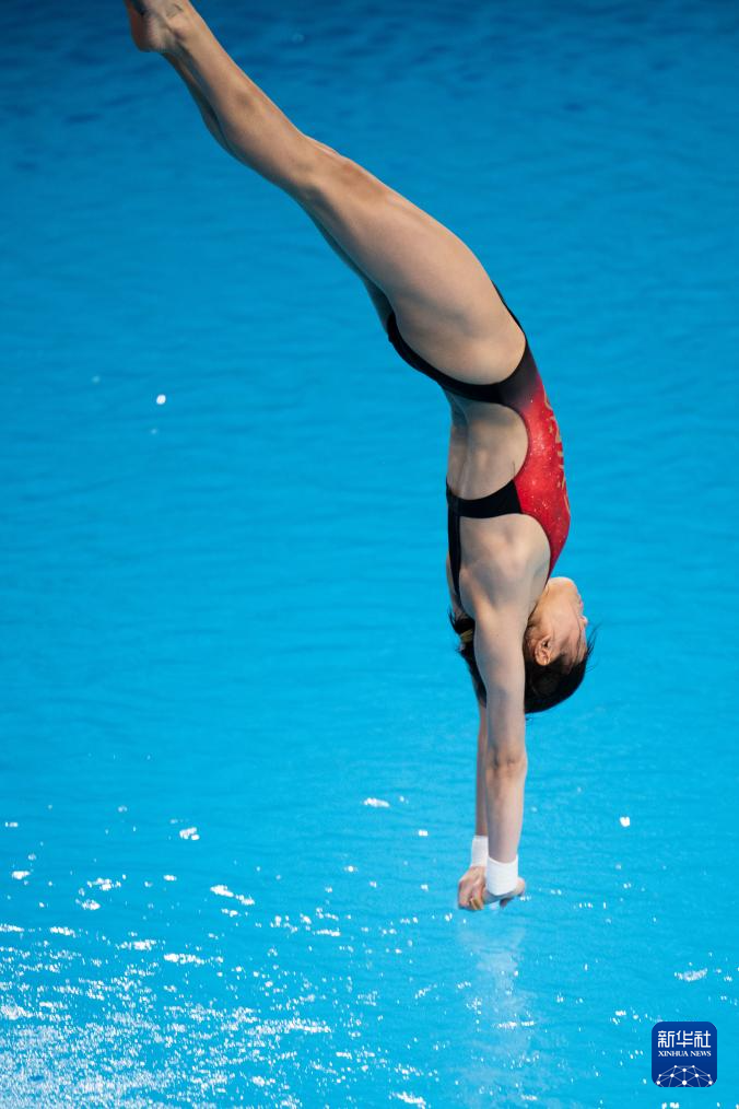 11月10日,上海队选手陈芋汐在完成动作后。