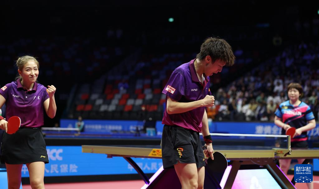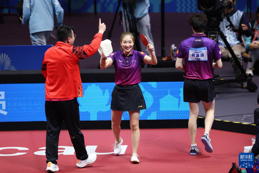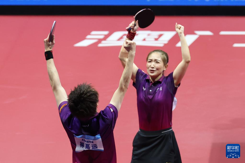 11月14日,在澳门进行的第十五届全国运动会乒乓球混合双打金牌赛中,广东队组合林高远/刘诗雯4比2战胜江苏队组合陈垣宇/蒯曼,夺得冠军。