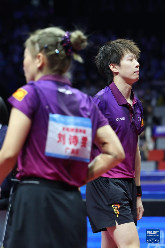 11月14日,广东队组合林高远/刘诗雯(左)在比赛后。