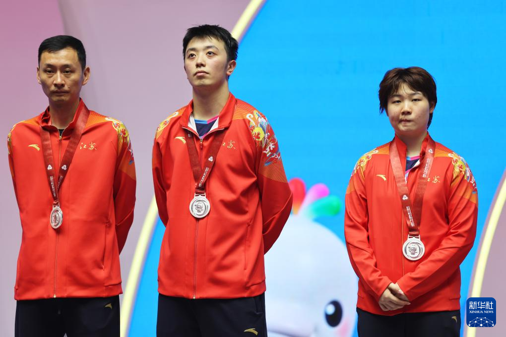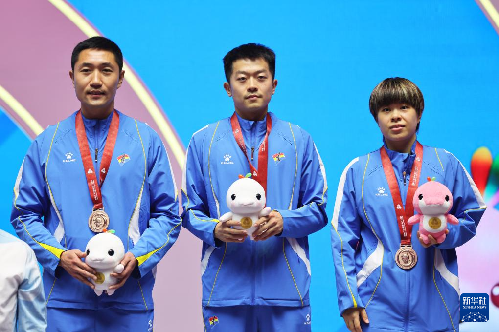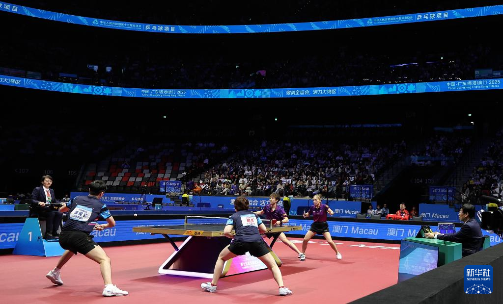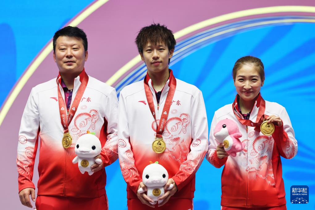 当日,在澳门进行的第十五届全国运动会乒乓球混合双打金牌赛中,广东队组合林高远/刘诗雯4比2战胜江苏队组合陈垣宇/蒯曼,夺得冠军。