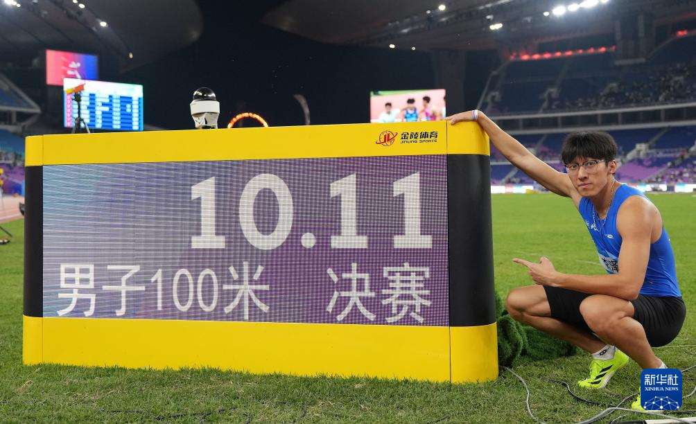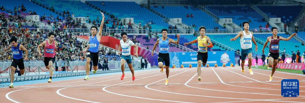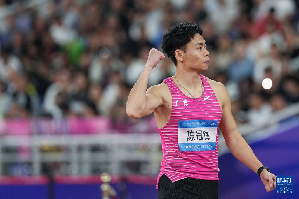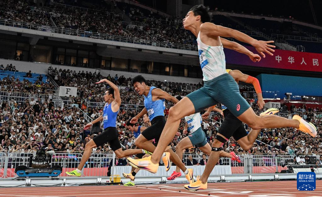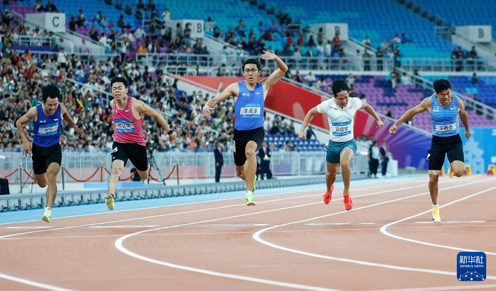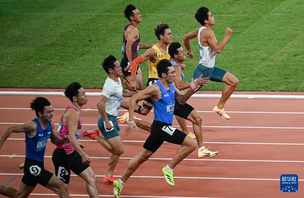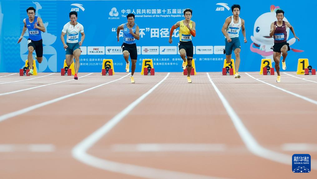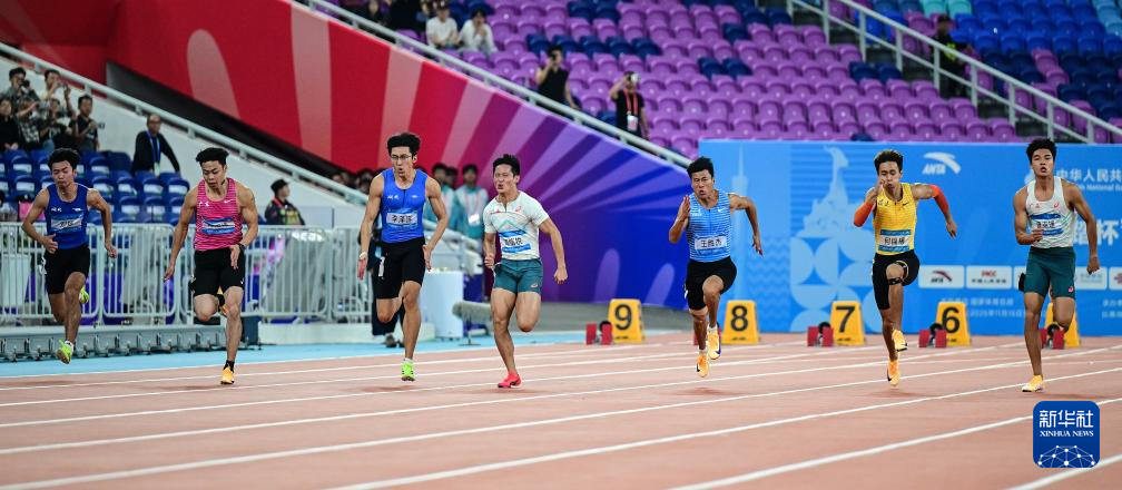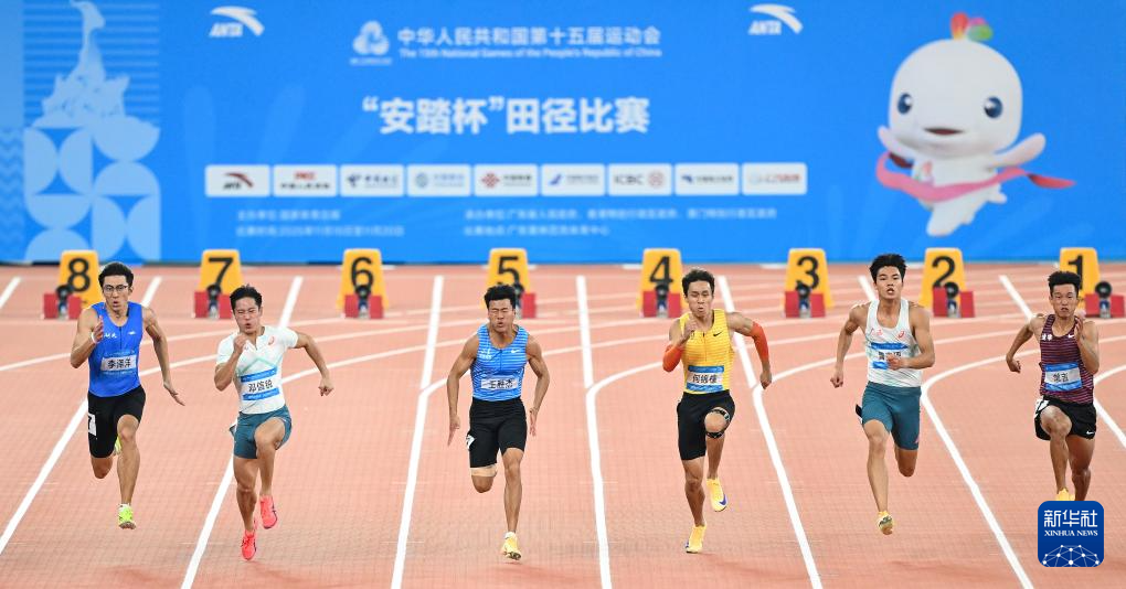 当日,第十五届全国运动会田径男子100米决赛在广州举行。