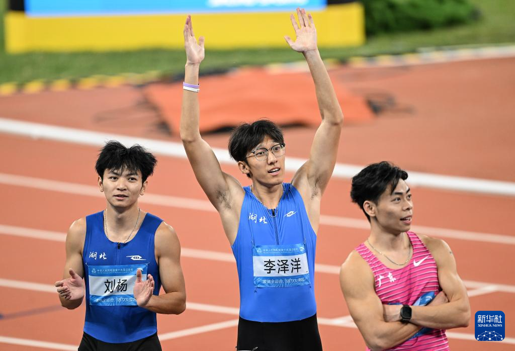 11月17日,湖北队选手李泽洋(左)在冲线后庆祝。