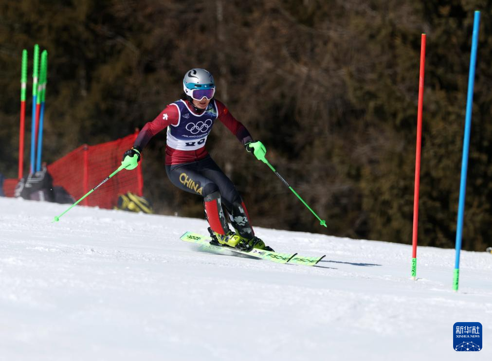 2月18日,中国队选手张玉营在女子回转第一轮比赛中。