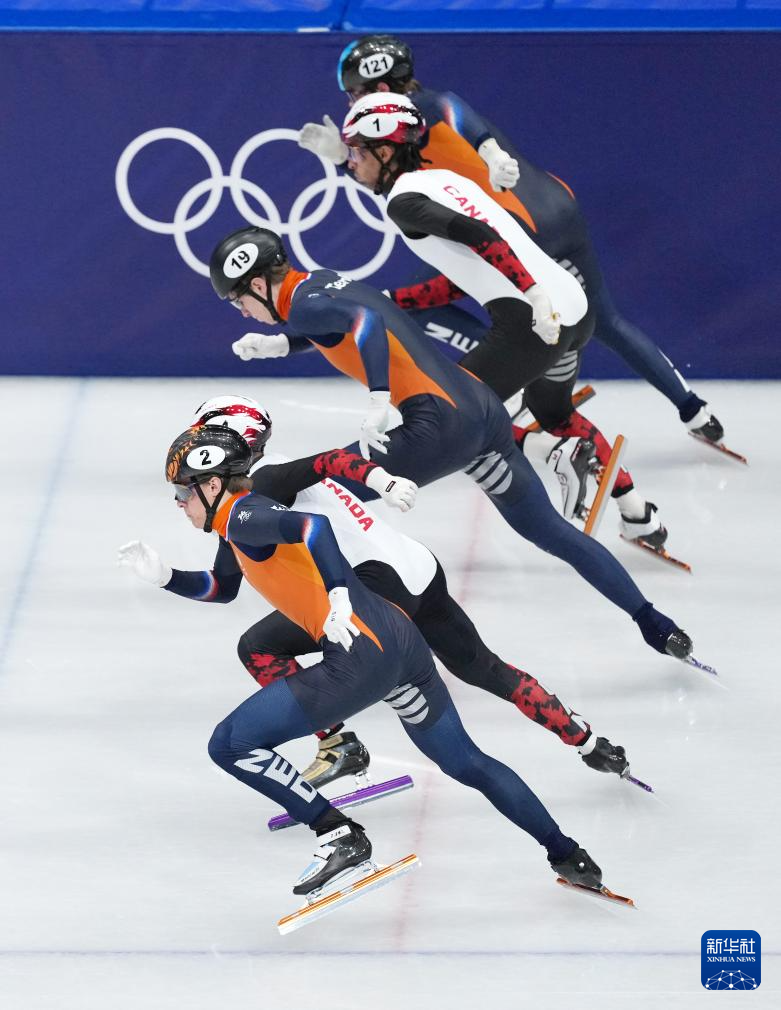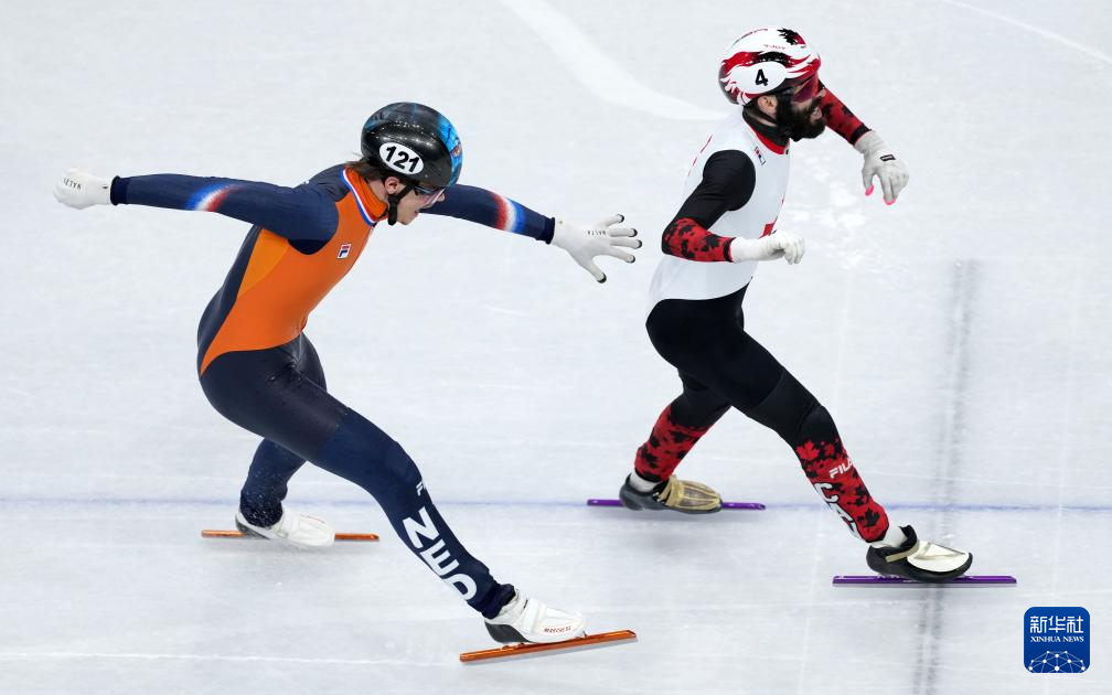 当地时间2月18日,在米兰-科尔蒂纳冬奥会短道速滑男子500米接力A组决赛中,加拿大队选手史蒂文·杜博伊斯、荷兰选手梅勒·范特·沃特和延斯·范特·沃特分获冠、亚、季军。