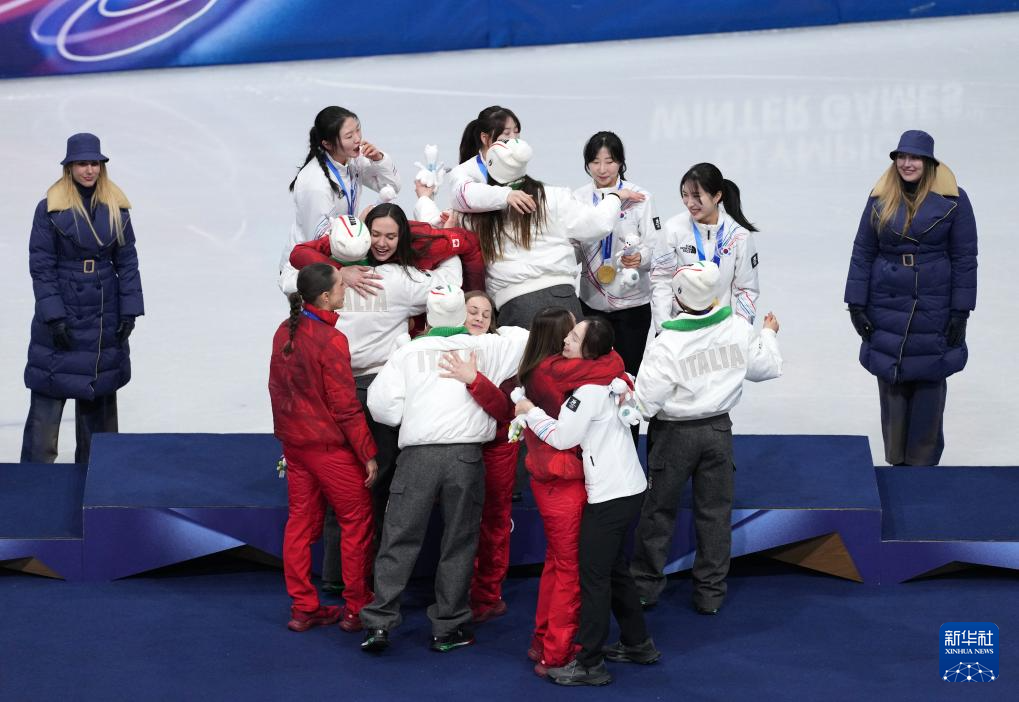 当地时间2月18日,在米兰-科尔蒂纳冬奥会短道速滑女子3000米接力A组决赛中,韩国队、意大利队和加拿大队分获冠、亚、季军。