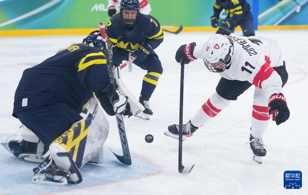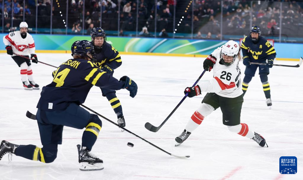 当地时间2月19日,米兰-科尔蒂纳冬奥会冰球项目女子铜牌赛在意大利米兰举行,瑞士队2比1战胜瑞典队。