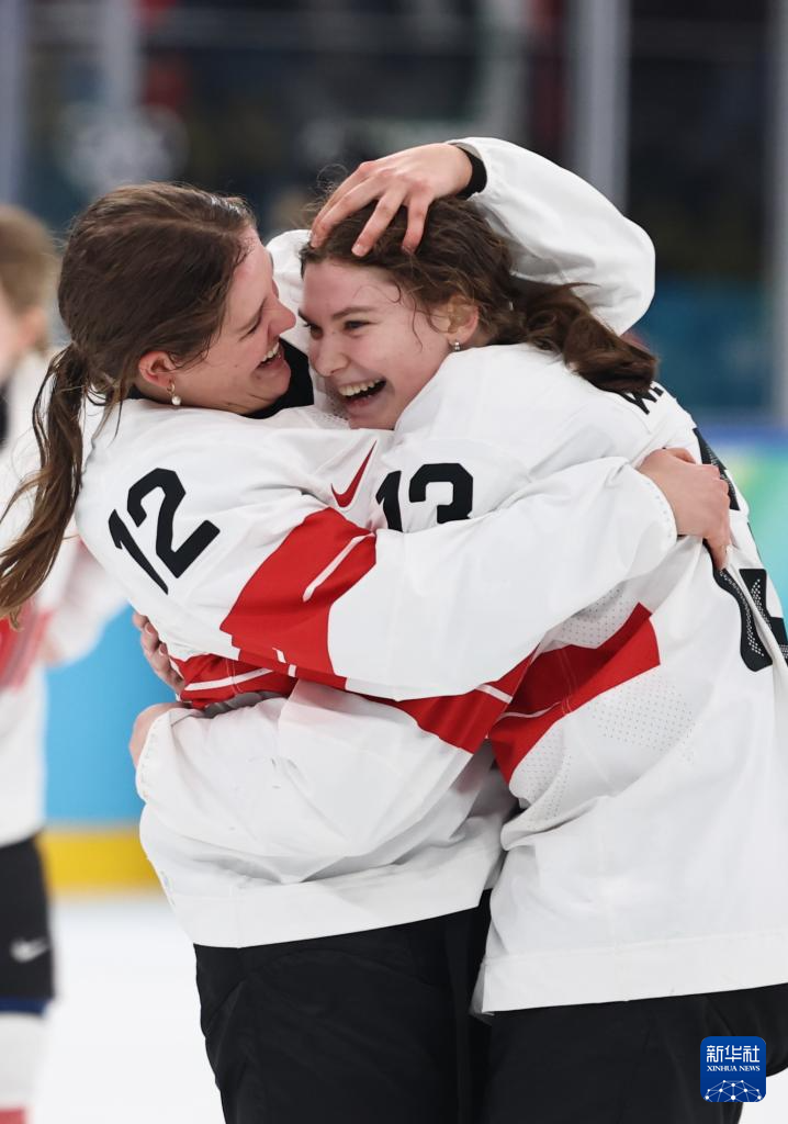 2月19日,瑞士队球员阿林娜·米勒(下左)在加时赛中攻入制胜球后庆祝。