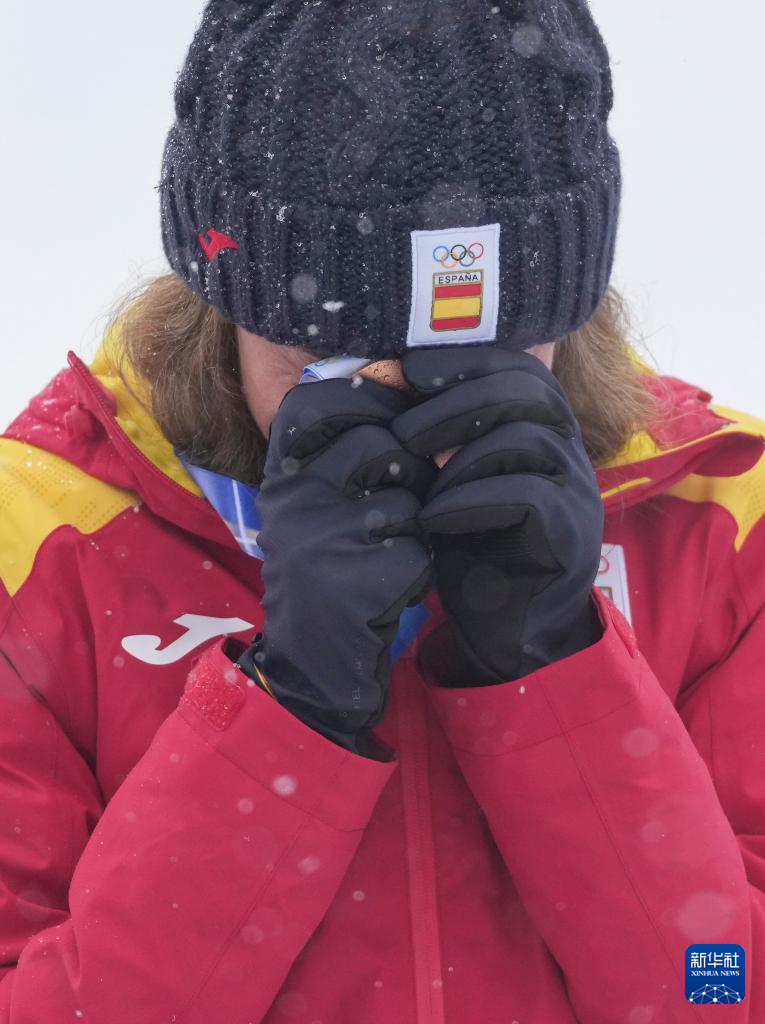 2月19日,西班牙选手阿隆索·罗德里格斯在比赛后庆祝。她获得季军。