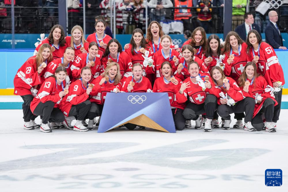 2月19日,季军瑞士队在颁奖仪式后合影。