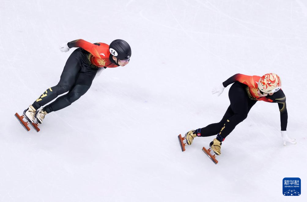 2月20日,中国队选手张柏浩(左上)和林孝埈(右)在比赛中。