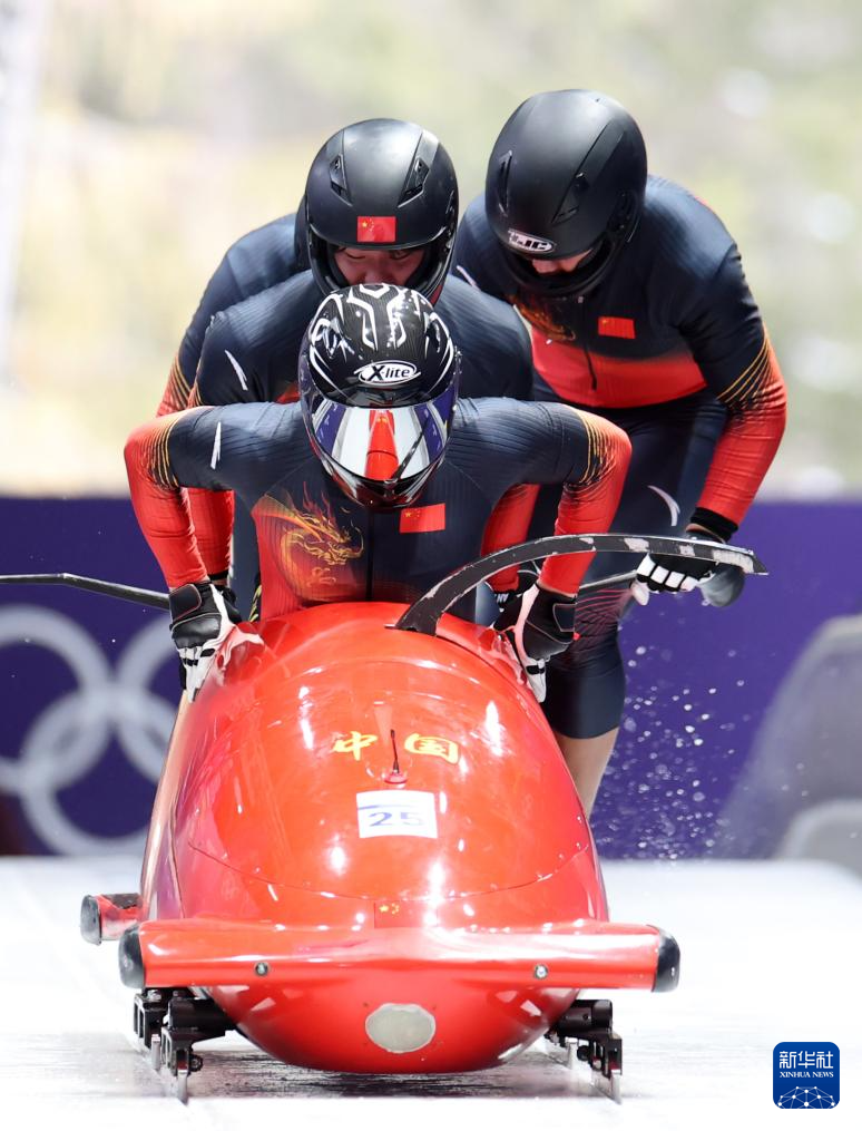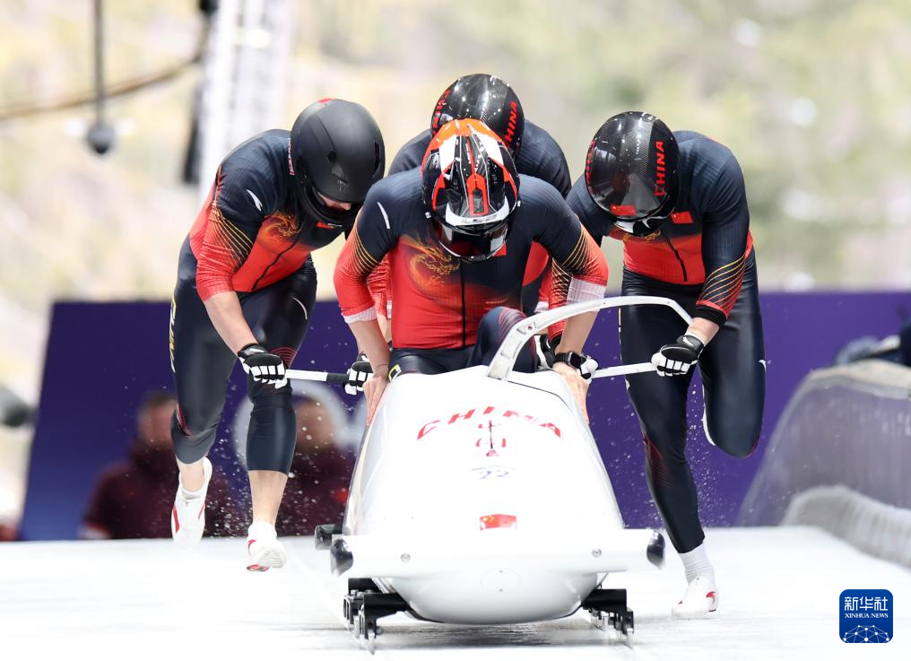 当地时间2月21日,米兰-科尔蒂纳冬奥会雪车项目男子四人赛在意大利科尔蒂纳举行。