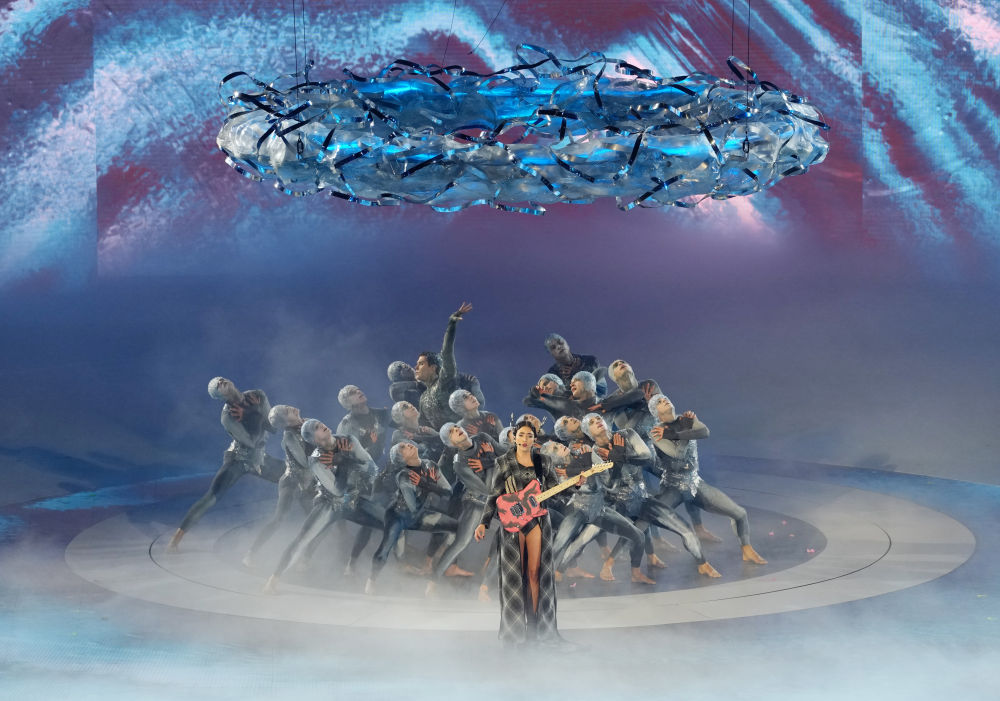 ↑演员在闭幕式上表演。