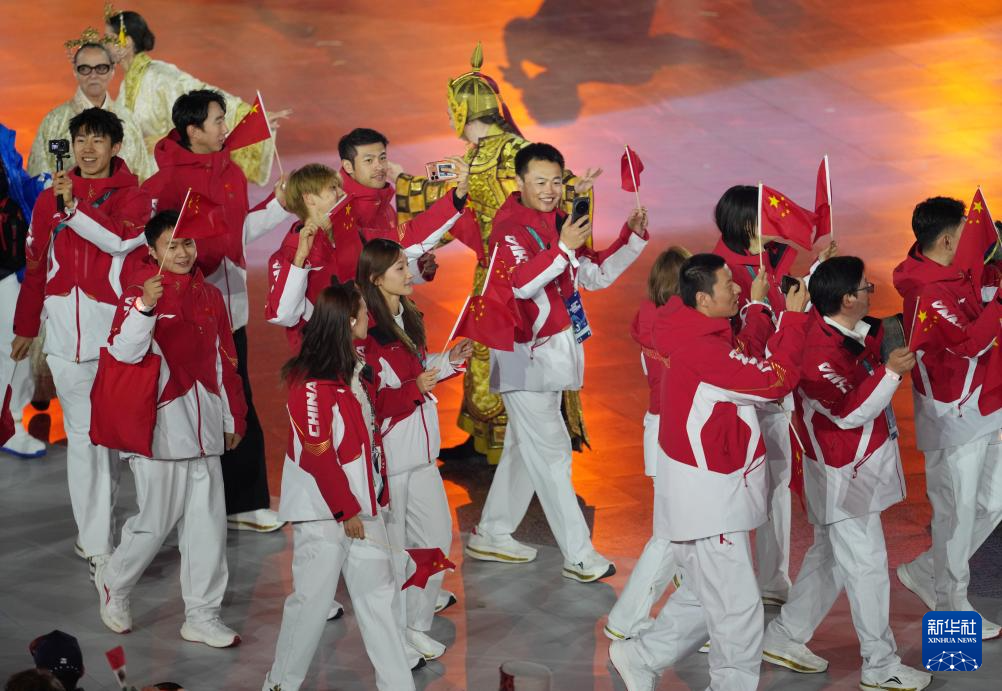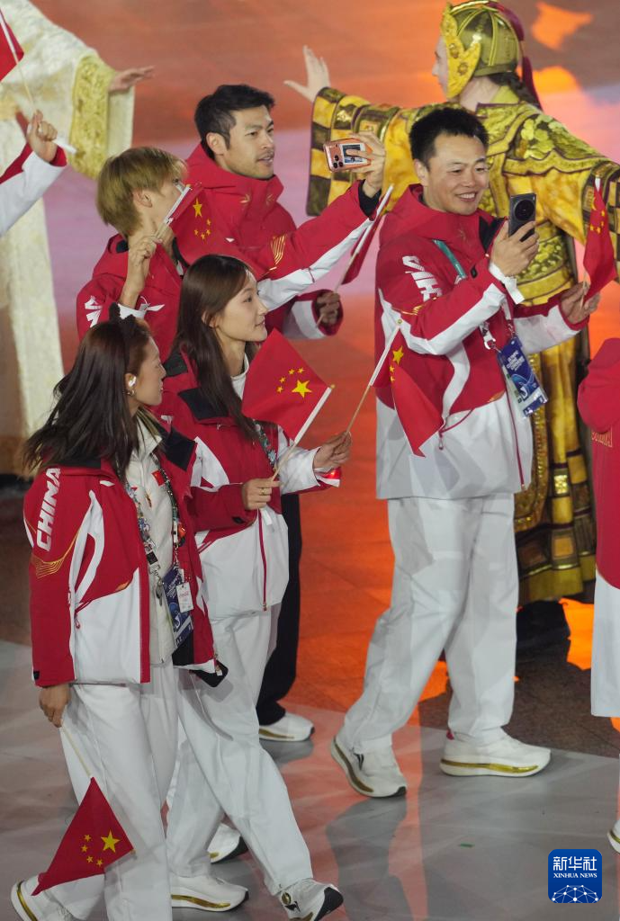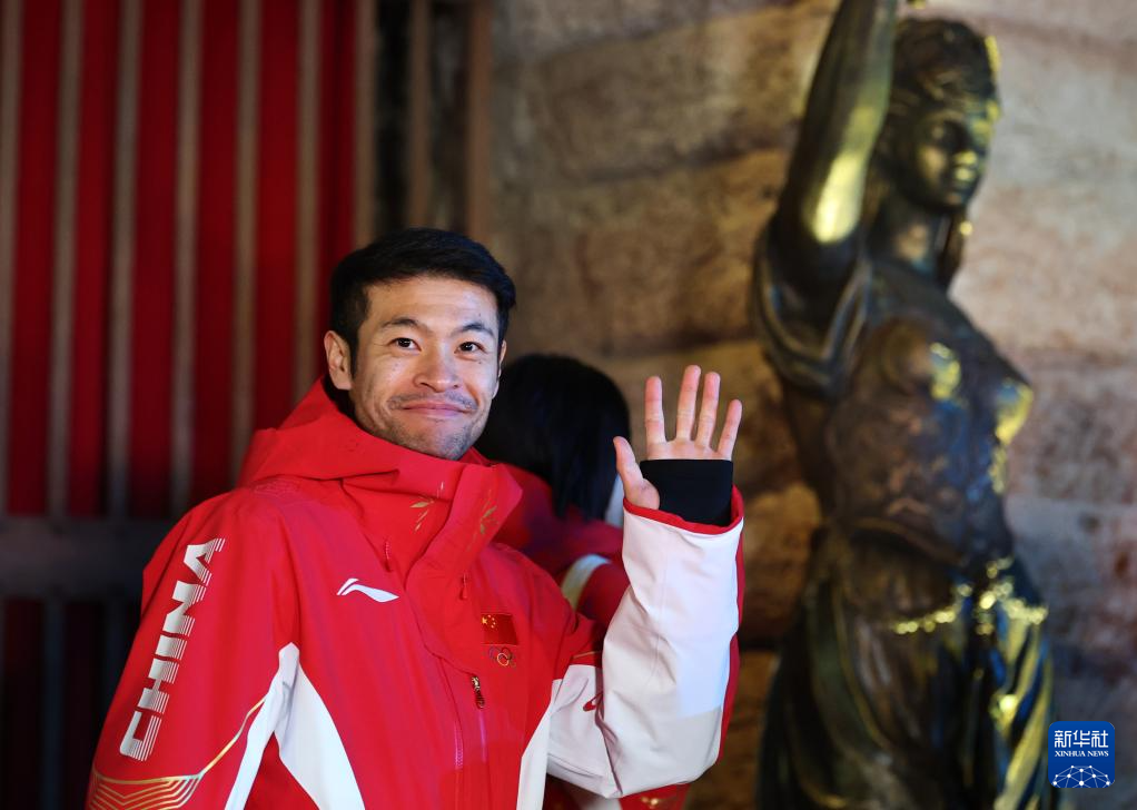 2月22日,中国体育代表团旗手苏翊鸣准备入场。