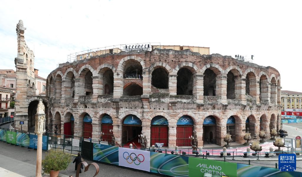 这是2月22日拍摄的闭幕式前的维罗纳奥林匹克竞技场外景。
