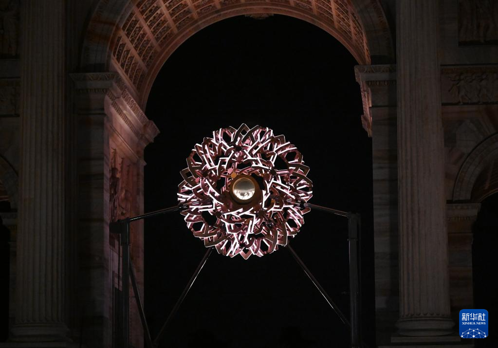 这是2月22日在意大利米兰和平拱门拍摄的熄灭后的主火炬。