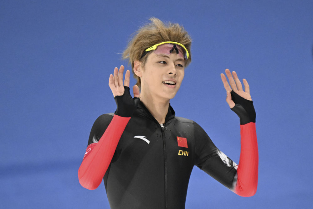 2月8日,中国选手刘瀚彬在速度滑冰男子5000米决赛后致意。新华社记者 武巍 摄