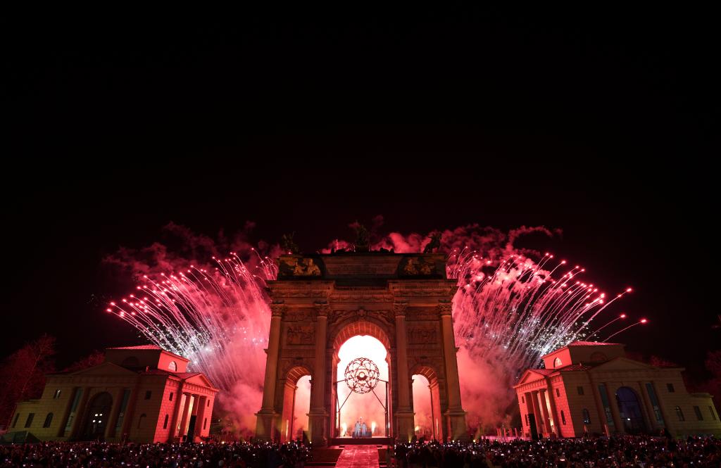 2月6日,在米兰和平拱门,主火炬被点燃。新华社记者 孙非 摄