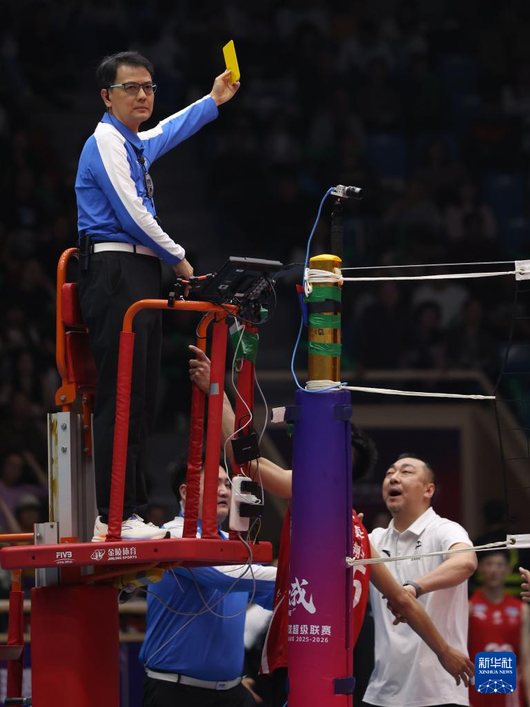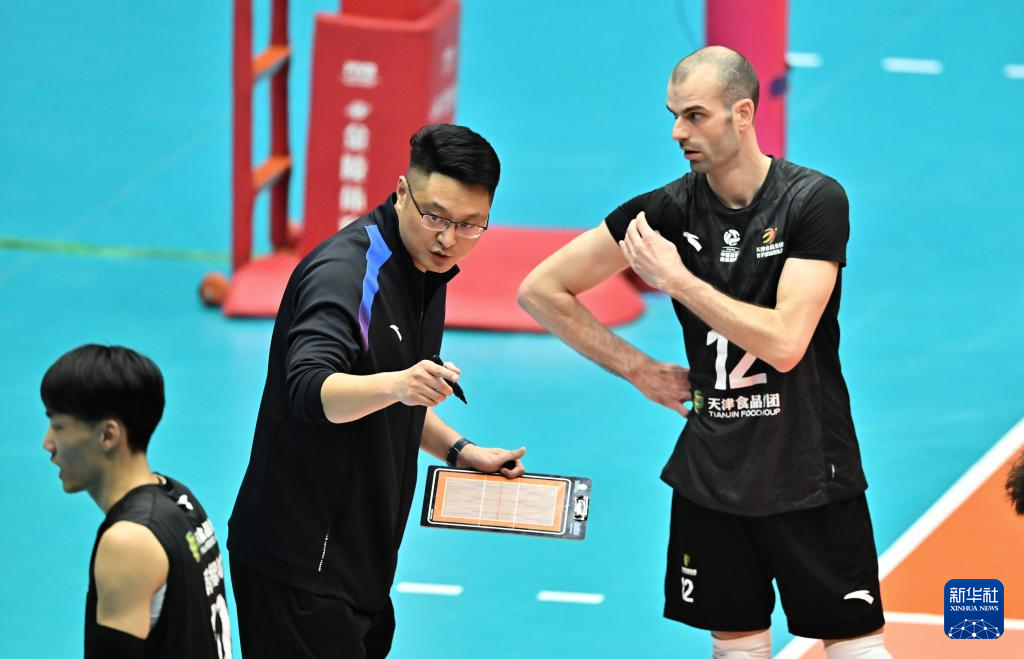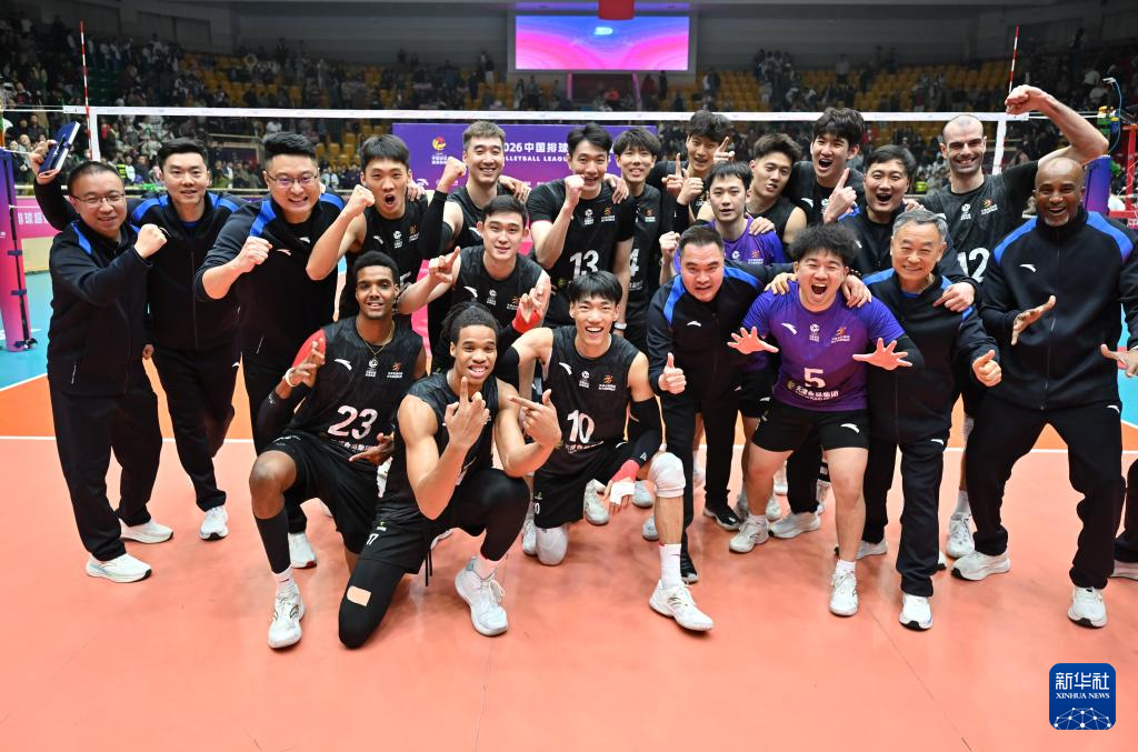 3月29日,在2025-2026赛季中国男子排球超级联赛总决赛冠亚军决赛首回合比赛中,天津食品集团队主场3比2战胜保定沃隶队。