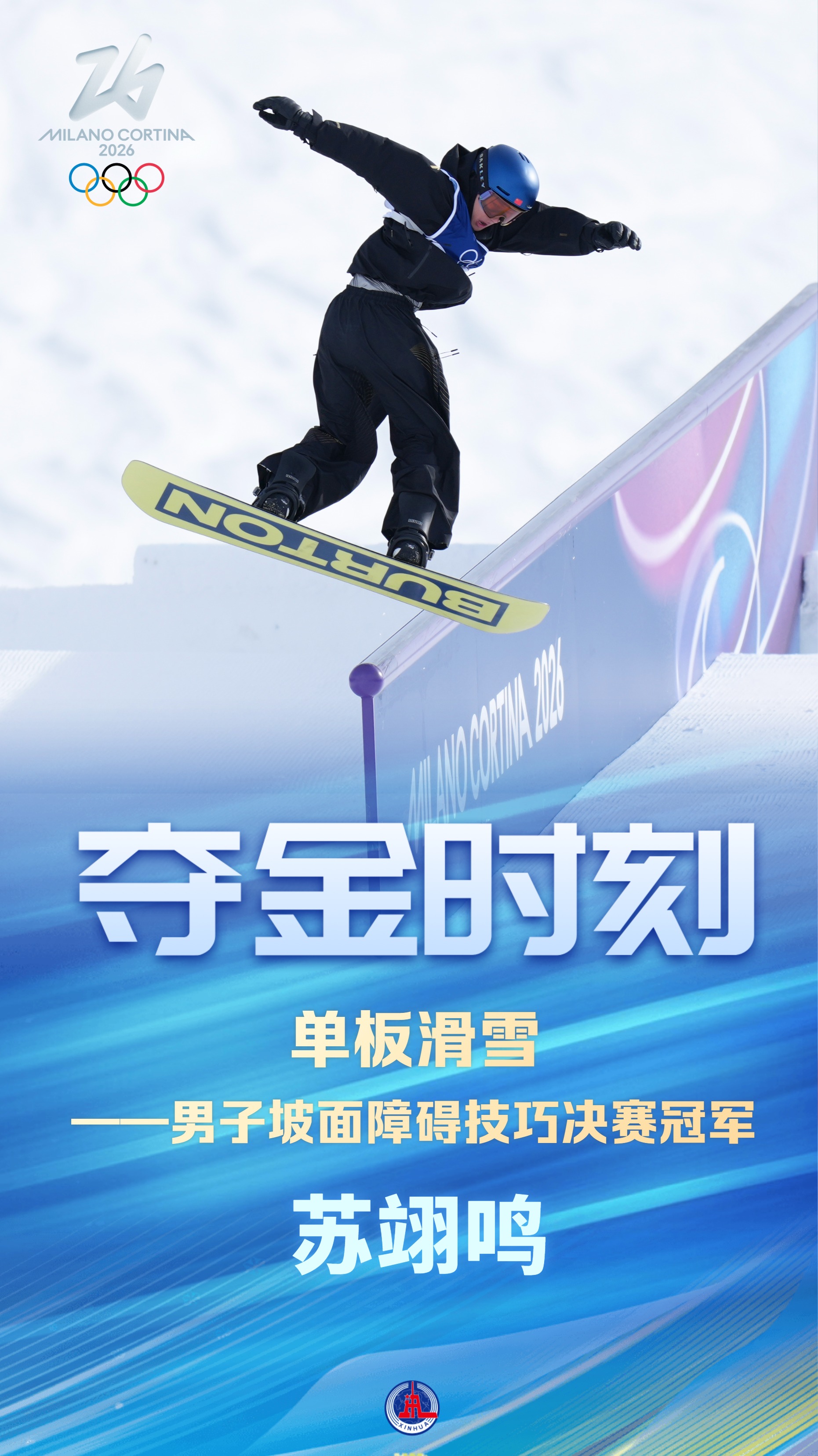 单板滑雪男子坡面障碍技巧决赛:苏翊鸣夺冠