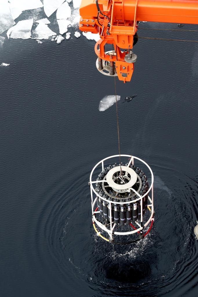图为科考队员回收采取水样的CTD。新华社记者刘诗平 摄