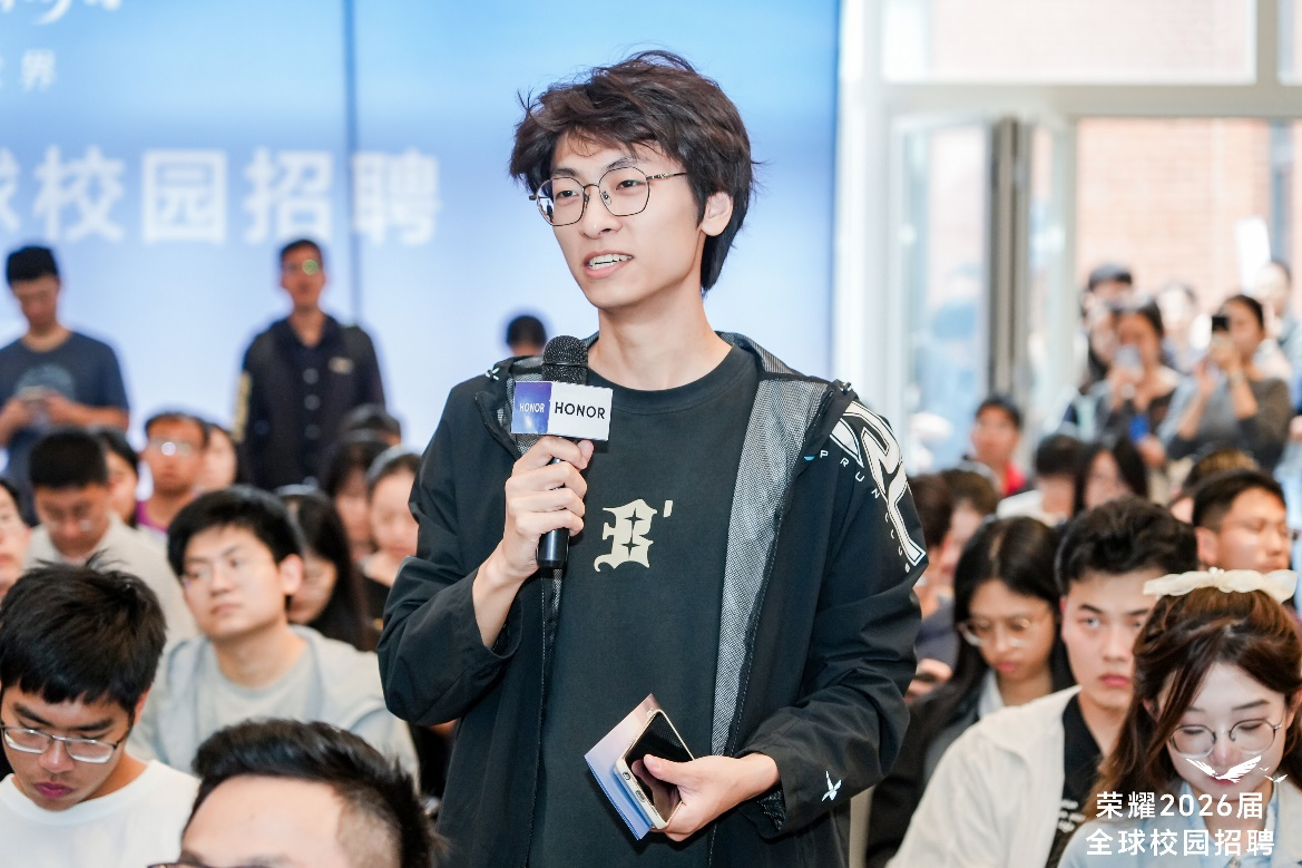 “假设我现在手里有多个Offer。请您告诉我,我为什么要选择荣耀?请给我个最能打动我的理由。”“荣耀把自己定位为 AI终端生态公司,那你们认为荣耀做过最成功的 A1终端是什么?”在清华大学荣耀校招宣讲现场,面对荣耀终端股份有限公司产品线副总裁李坤,学生们的提问直抵核心,没有预设的“标准答案”,只有坦诚的观点交锋。这样的场景,改变了人们对校招的固有认知:校招不再是企业“挑人”的独角戏,而是人才与企业相互审视、平等对话的双向互动。