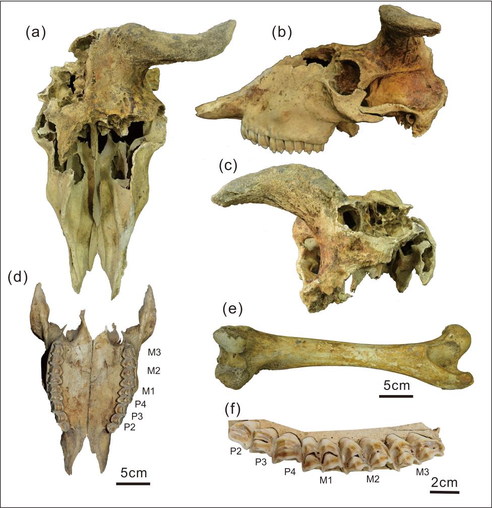 随后,科考团队对周边沉积环境进行进一步清理与辨识,又在距该标本约20米处发现另一具个体化石。经形态测量、年代学测定及系统分类分析确认,两具化石均为羚牛,分别是1头未成年个体和1头成年个体,均来自晚更新世晚期,距今约1.5万年和1.1万年。