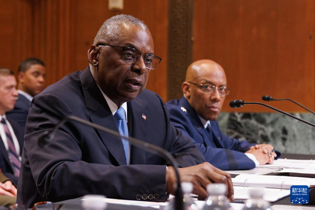 5月8日,美国国防部长奥斯汀(前)在华盛顿国会出席听证会。新华社发(亚伦摄)