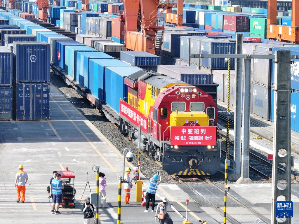 新华社重庆4月20日电(记者李晓婷)20日上午,一列满载“重庆造”聚酯切片的中亚班列,从重庆团结村中心站缓缓驶出,这是重庆首次发行图定中亚班列,此后将以每月2列的固定频次实现常态化开行。