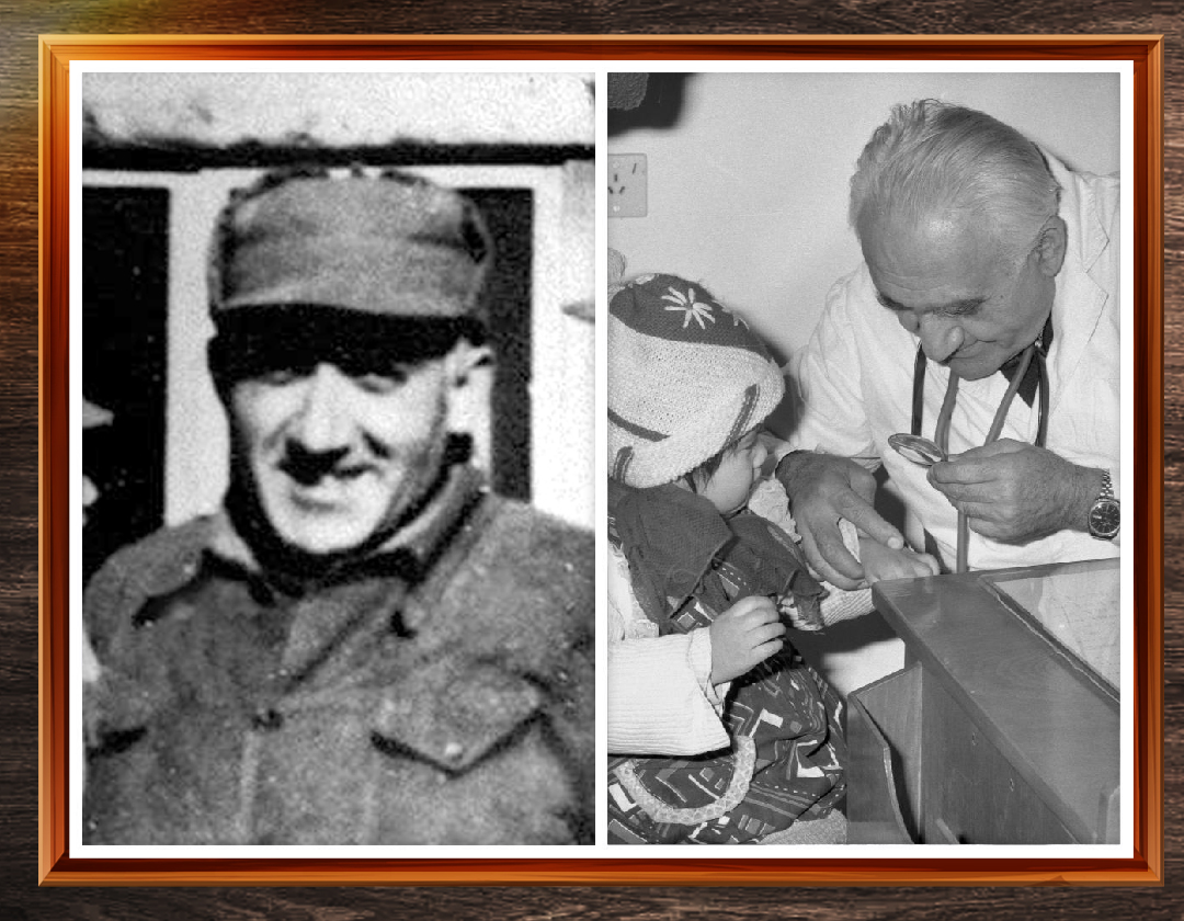 左图是1943年,米勒在延安国际和平医院任内科主任的资料照片;右图是1981年,米勒教授(中)和医生一起查病房。