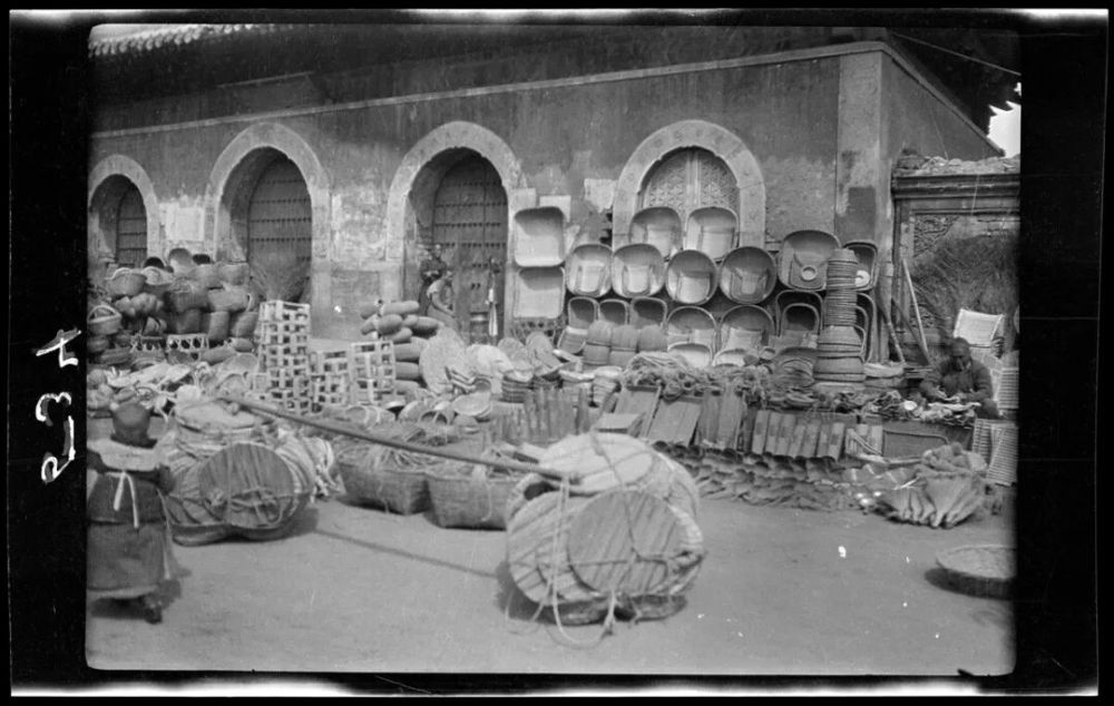 1918-1919年间,美国社会学家西德尼·戴维·甘博拍摄的隆福寺庙会上卖篮筐的市场。受访者供图(来自杜克大学开放使用图片)