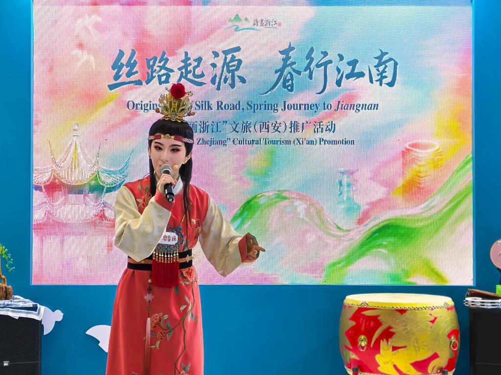 2026西安丝绸之路国际旅游博览会上浙江展台正在进行展演。新华社记者 蔡馨逸 摄
